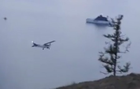 Очевидцам удалось заснять падение самолета "Cessna-172 R" около поселка Хужир на Ольхоне, которое произошло вечером 16 июля. По словам очевидцев, на борту находились четыре человека. В результате крушения они выжили, однако двое находятся в тяжелом состоянии.