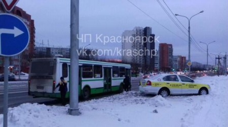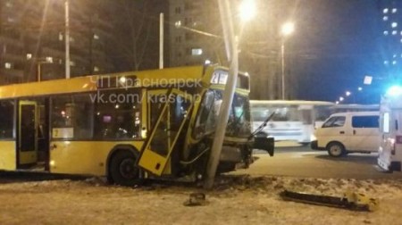 Авария произошла в Октябрьском районе Красноярска около десяти часов вечера 8 декабря. Автобус с пассажирами двигался по маршруту №2. По предварительной версии, на улице Годенко водитель попытался проскочить перекресток на красный сигнал светофора, но не успел.