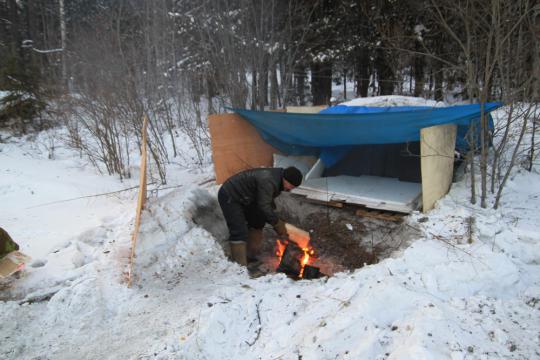 В ночь с четверга на пятницу столбик термометра опустился ниже 30 градусов. Дальнобойщики, чтобы не замерзнуть, грелись в шалаше, который изготовили из обшивки и утеплителя прицепа. На гостиницу у них теперь попросту нет денег. К тому же боятся оставлять машину. В ночь с 26 на 27 января, поехав отогреться и поспать в тепле, водители лишились сразу восьми колес с левой стороны грузовика.