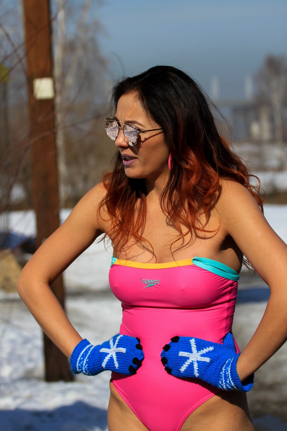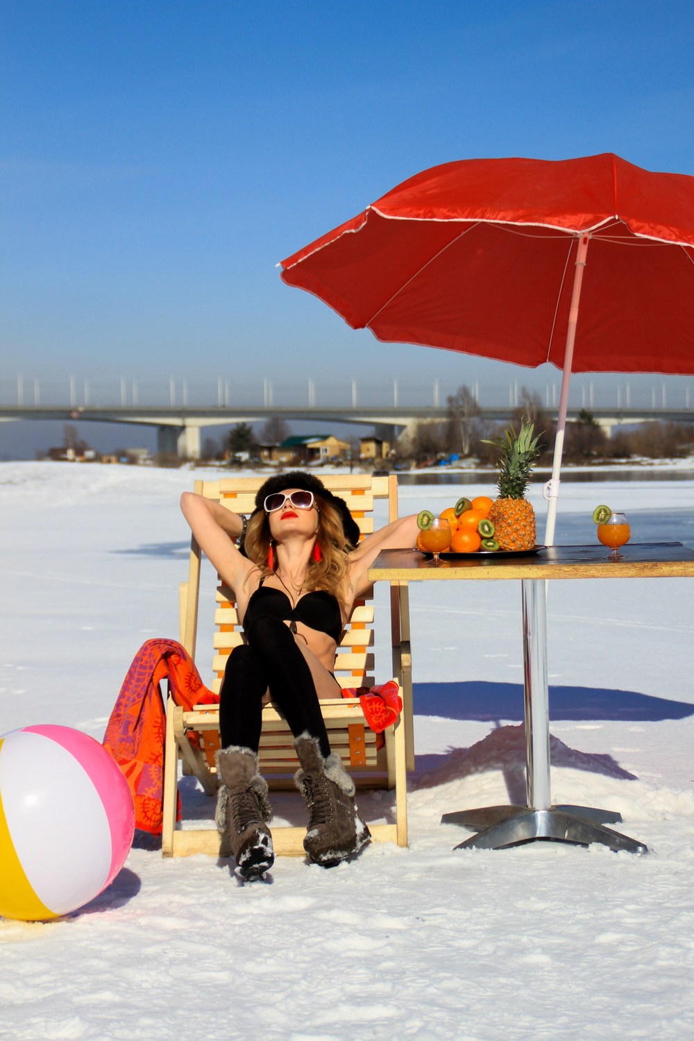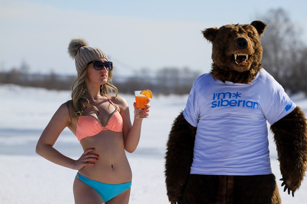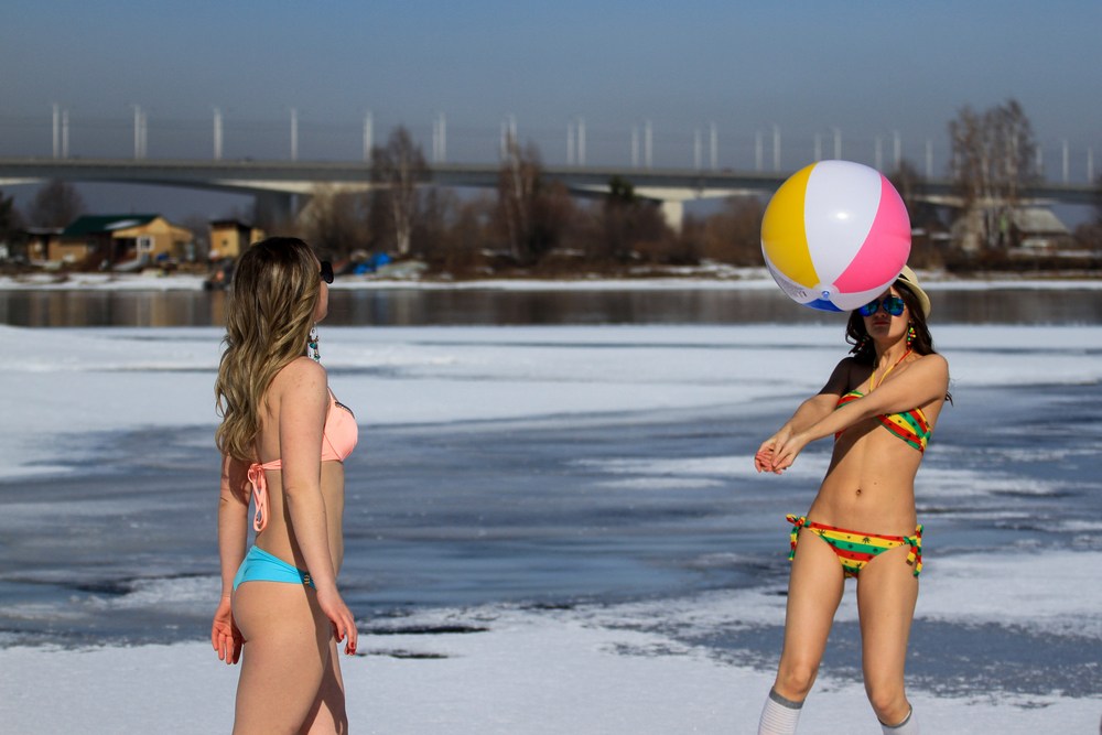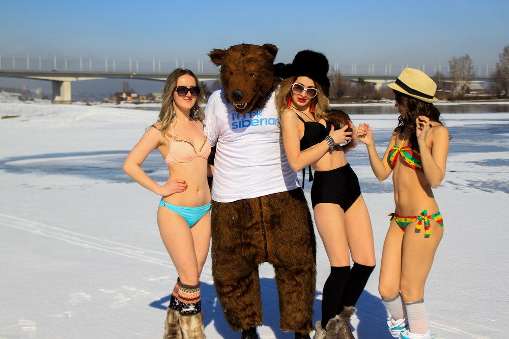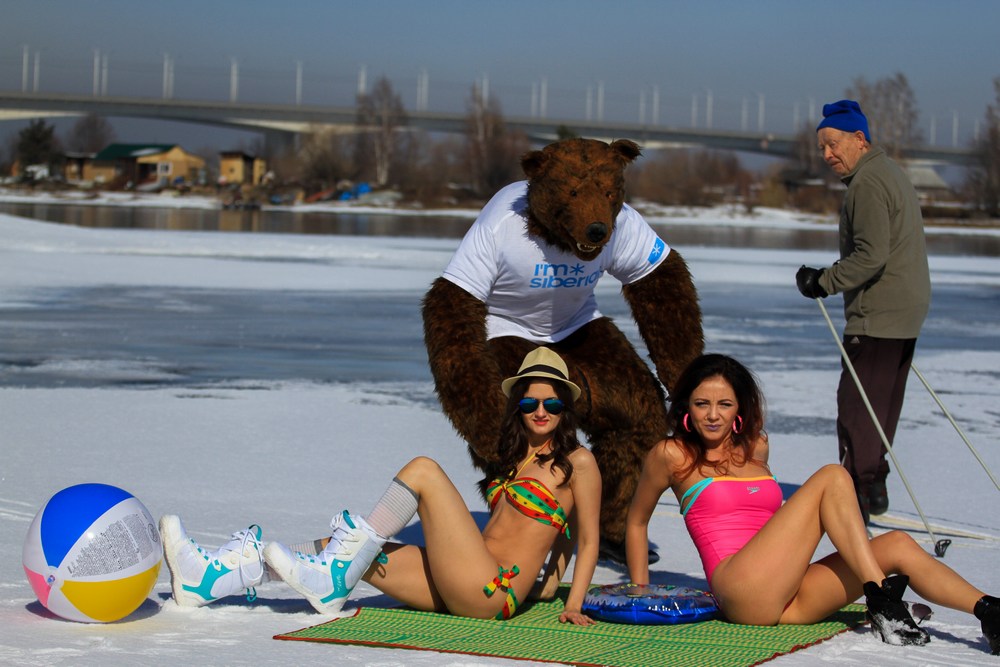 Невзирая на бодрящий мартовский морозец, девушки согласились участвовать в акции "Белые пляжи Сибири". Цель акции - реклама местных пляжей.