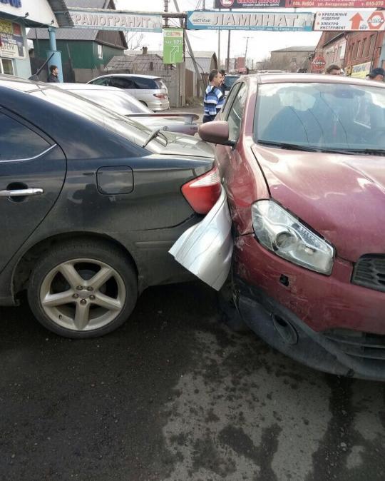 В Иркутске пожилой автомобилист, двигаясь по парковке торгового центра «Город Мастеров» на автомобиле Nissan Qashqai, сбил пешехода и протаранил два припаркованных автомобиля.