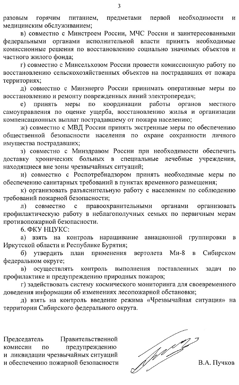 Ниже приводится протокол заседания рабочей группы по поводу введения ЧС в Сибирском федральном округе.