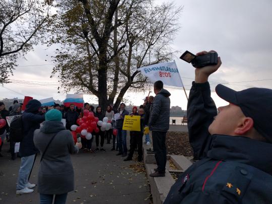 Пикет получился достаточно камерным - в пиковый момент у памятника собралось около 150 человек, включая журналистов, полицейских и сотрудников в штатском.