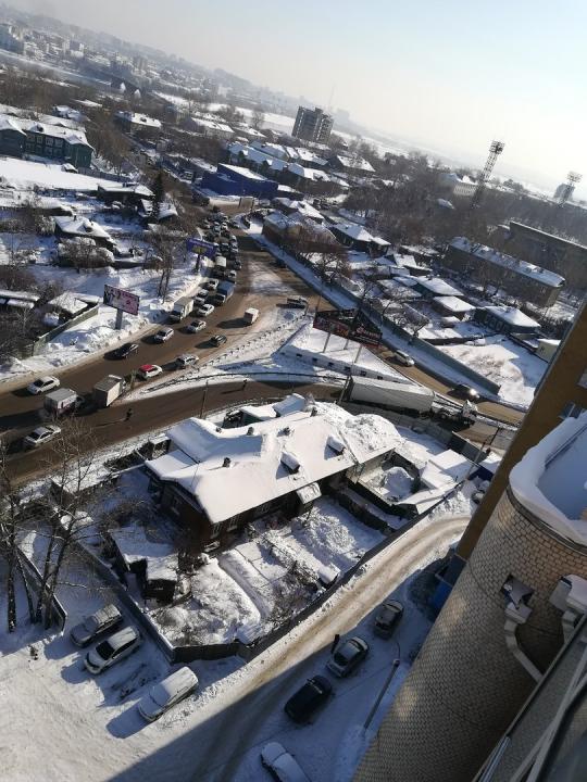 Днем 15 февраля на выезде с Иркутного моста в сторону улицы Джамбула образовалась пробка из-за слетевшего у тягача прицепа.
