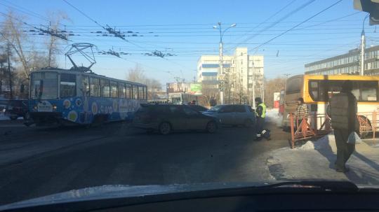 Днем 22 декабря трамвай №3 столкнулся с автобусом на пересечении улиц Советской и Декабрьских событий в Иркутске.