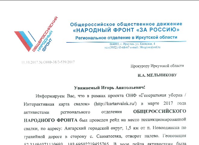 Мы не берёмся утверждать, что ОНФ тоже были в доле на этом празднике сказочных объёмов и фантастических цен. Но, похоже, их участие в судьбе свалки хоть и не привело к снижению цены, однако может послужить доказательством того, что не было там ни метрового, ни двухметрового слоя мусора - ОНФ к переписке прикладывал фотографии свалки в Новоодинске.