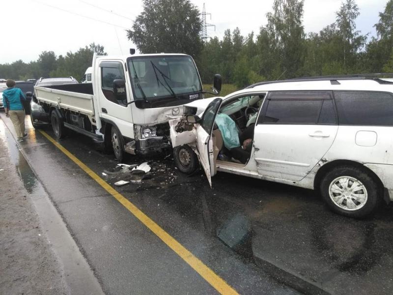 ДТП произошло около 8 часов 20 минут. Пресс-служба регионального ГУ МВД России сообщила, что водитель автомобиля «Тойота Филдер» выехал на полосу встречного движения, где столкнулся с грузовиком «Мазда Титан». Тут же в «Мазду» въехала «Тойота Версо», которая ехала следом и не успела затормозить.