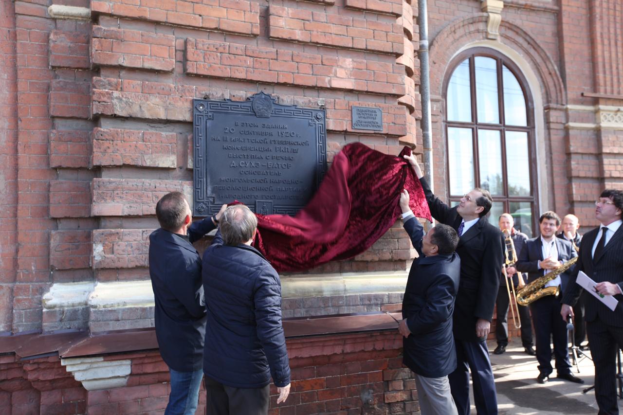 На здании Иркутской областной филармонии 20 сентября открыли новую мемориальную доску в честь Дамдина Сухэ-Батора.