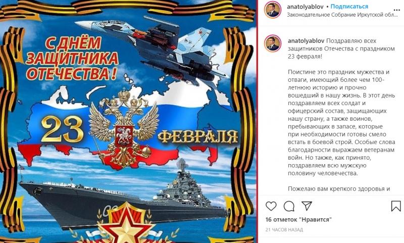 Так, например, проигнорировали День защитника Отечества Дмитрий Тютрин, Артем Лобков, Роман Габов, Андрей Маслов, Олег Попов, Денис Некипелов, да много кто… Что касается вспомнивших, то у них тексты прямо коррелируют с тем фактом, служил ли сам поздравлянт в армии. Так, отмаршировавший сколько надо Евгений Сарсенбаев придумал прямо отдельный тематический опрос с намеком, что день большинства его парламентских коллег – 8 марта.