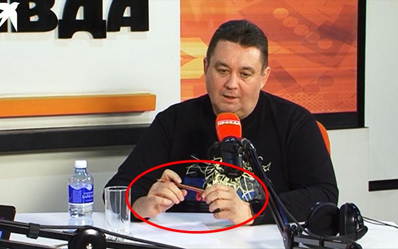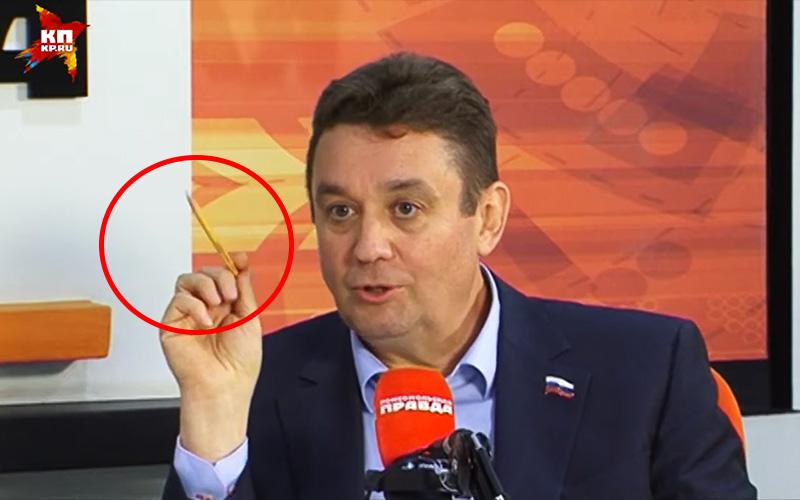 Например, активное использование ручки при её наличии, которую он будет перебирать, теребить, а иногда использовать как указку. Всё это – признаки внутренней нервозности, желания представить ситуацию в лучшем свете, а в случае с указкой – усилить давление на собеседника и напомнить, что он ниже Лабыгина по статусу.