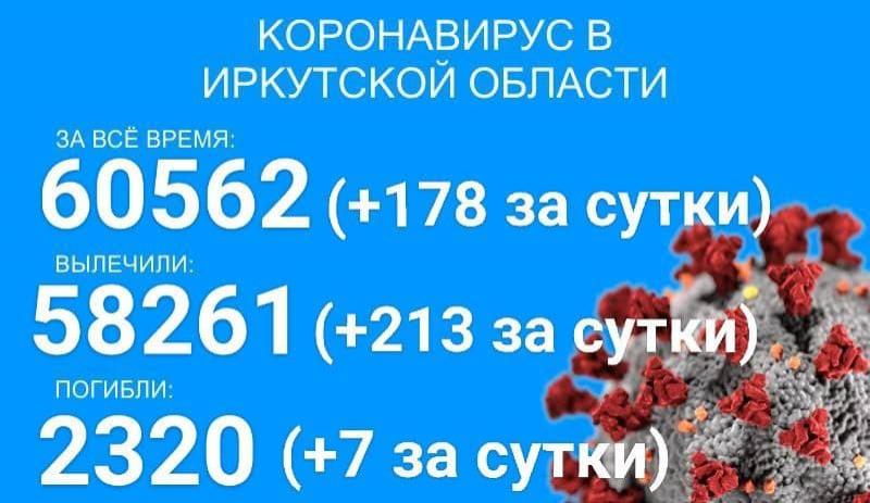 Коронавирус в Прибайкалье: 178 заболело, 213 выздоровело, 7 умерло