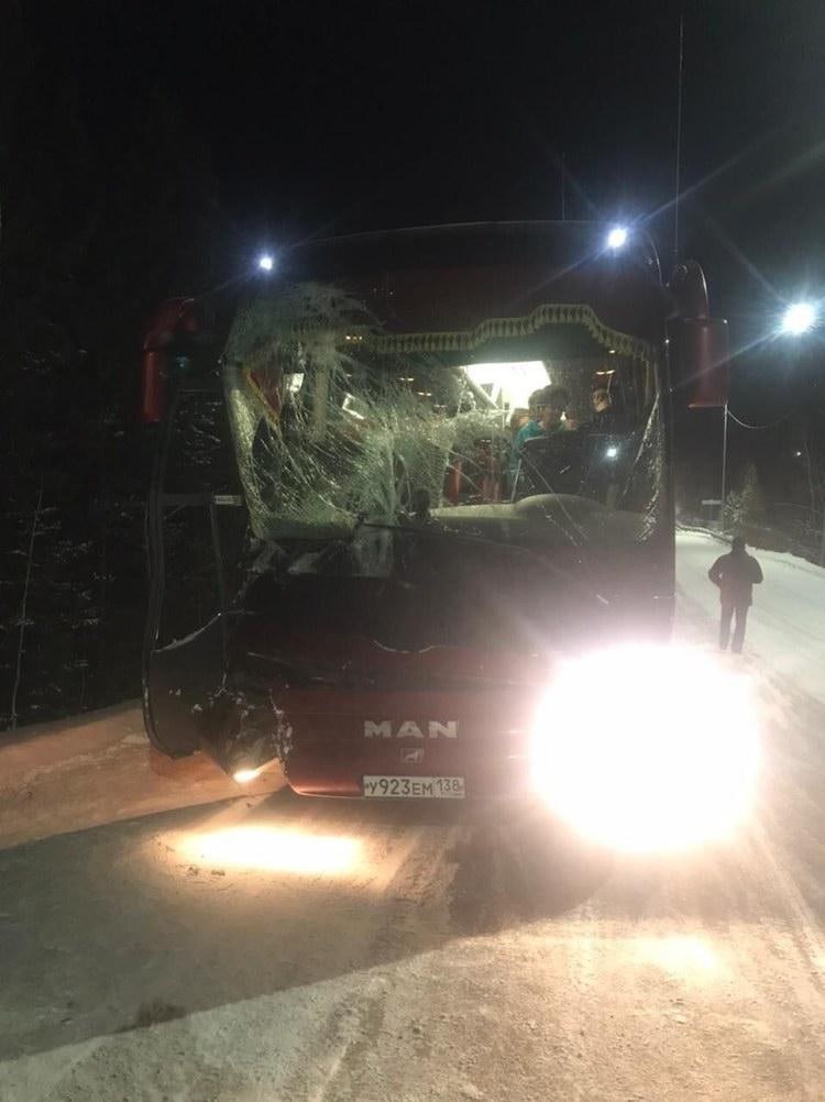 Авария произошла в районе посёлка Бадарминск около 18 часов. В автобусе находилось более 40 пассажиров. Предварительно, никто не пострадал.