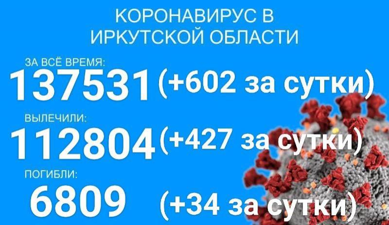 По данным оперштаба Иркутской области на утро 27 ноября, в регионе официально зарегистрирован 137531 подтверждённый тестами ПЦР случай заболевания коронавирусом. Прирост за сутки составил 602 новых случая.