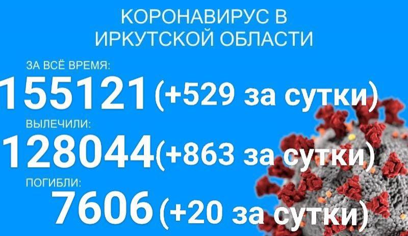 По данным оперштаба Иркутской области на утро 27 декабря, в регионе зарегистрирован 155121 официально подтверждённый тестами ПЦР случай заболевания коронавирусом. За сутки выявлено 529 новых случаев, 43 из них — дети.