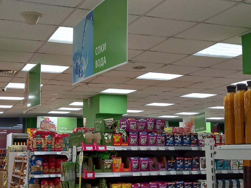 Очень сомнительный филиал, в помещении стоят непонятные предметы, которые мешают людям спокойно передвигаться внутри магазина. Чтобы найти нужный отдел, люди смотрят на указатели, но это им никак не помогает, потому что вывески перепутаны. Непонятно, почему в отделе с напитками стоит корм для животных.