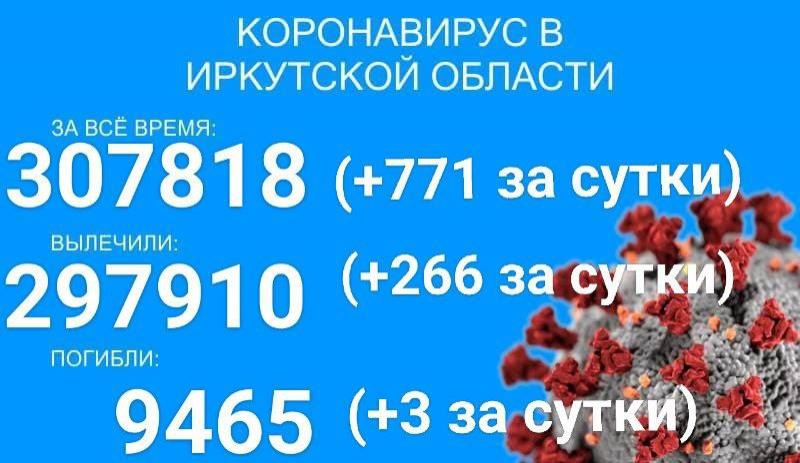По данным оперштаба Иркутской области на 21 августа, в регионе зарегистрировано 307818 официально подтверждённых случаев заболевания коронавирусом. За сутки был выявлен 771 новый случай.