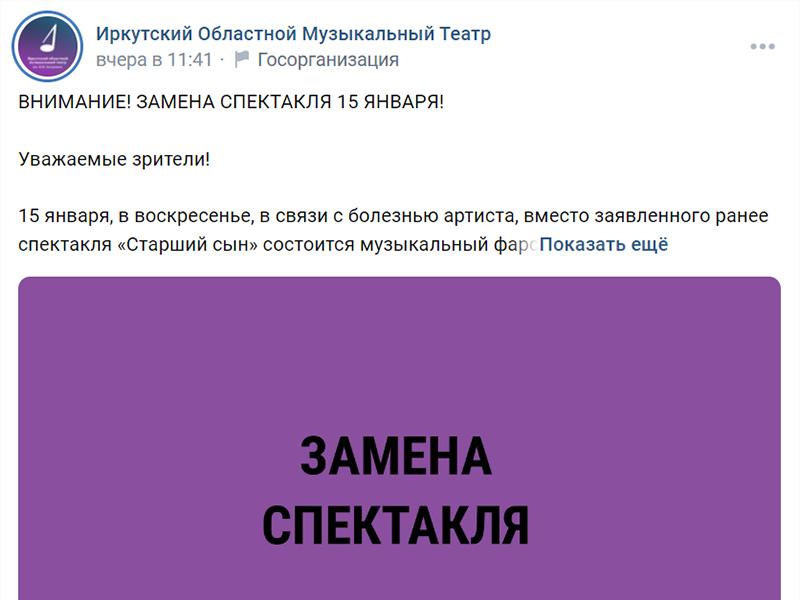 Затем на радость зрителям театр опубликовал завлекательный анонс показа оперы «Старший сын» 17 декабря, тем самым дав понять, что пока все актёры здоровы и «заболеют» чуть позже. Однако спустя ещё сутки и этот спектакль был заменён.