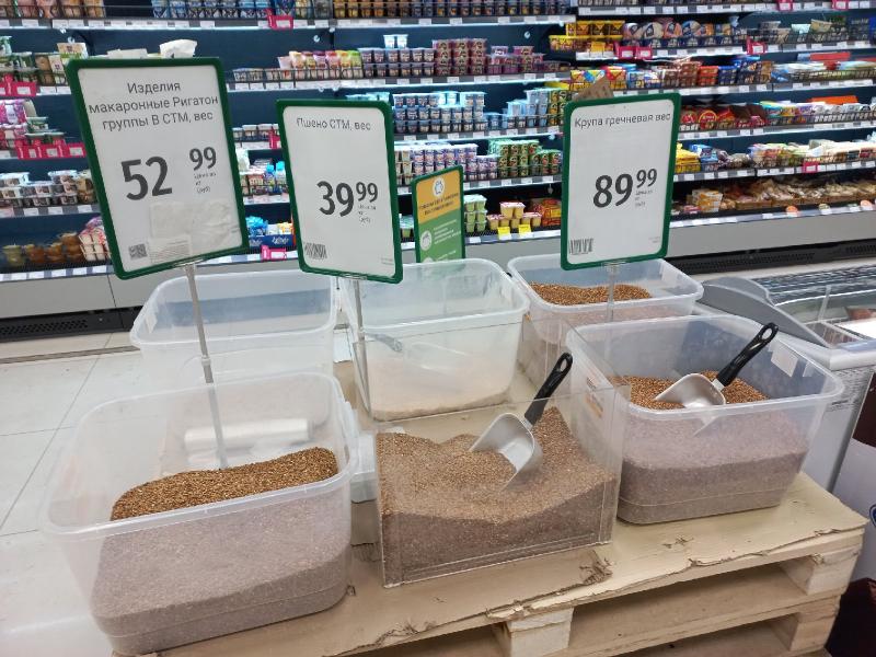Также смущают открытые контейнеры с макаронами и крупами. В магазине не сильно грязно, но пыль всё равно оседает и, соответственно, оказывается и в этих коробках.