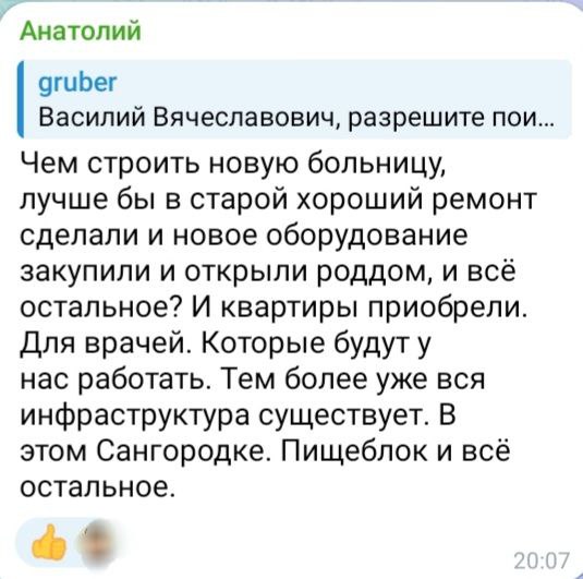 По словам градоначальника, рассматривается вариант строительства новой современной полноценной больницы (для пущей убедительности в посте выделено заглавными буквами). Которая будет соответствовать стандартам и требованиям современного туристического экогорода. И что немаловажно – с учетом роста численности населения и турпотока.