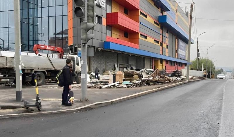 Снос провёл собственник магазина. Сейчас с территории вывозят мусор.