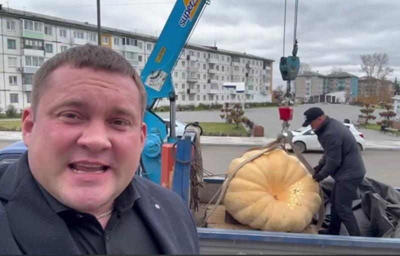 Тут, конечно, не стерпел чунский лидер Николай Хрычов и ревниво выкатил дыню побольше: весом 397 кило. Ну, понятно, не стерпел: в 2024 году его результат на выборах мэра округа был такой же: 85 процентов. А то, может, кто позабыл. Овощ не смог поднять даже гиревик Николай Дмитриевич, и кантовали тыкву подъемным краном.