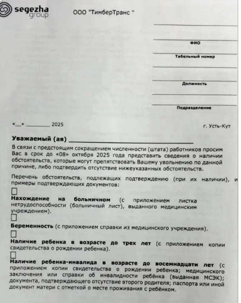То есть данные о количестве сокращенных есть только от самой компании. Аргумент соответствующий: век воли не видать. Джентльменам у нас верят на слово. А ведь сразу в нескольких неофициальных источниках сообщили, исходя из данных работников предприятия, об увольнении около тысячи человек с сегежинского предприятия в Усть-Куте. Увольнении разными путями, но результат-то один. В начале октября канал «Грусть-Кут» написал уже о 1300 покидающих «ТимберТранс» сотрудниках.