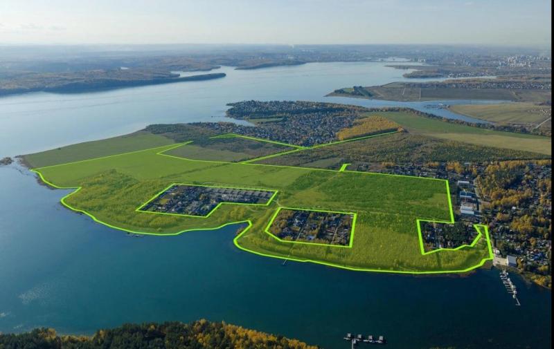 В деревне Новолисиха предлагается участок площадью 34,72 гектара на берегу залива Щучий. Построить можно индивидуальное, блокированное или малоэтажное жильё, с условиями благоустройства инфраструктуры и озеленения. Строить нужно в течение 12 лет. Начальная цена права заключения договора КРТ — 22,56 миллиона рублей. ДОМ.РФ должен получить 25% построенного жилья.