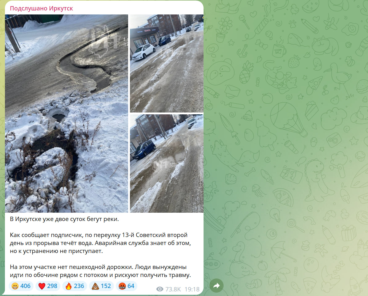 Показательно, что та же риторика стыдливо замалчивает ситуацию в «нечастных» организациях. Кто помнит аварию в городе Артемовск Бодайбинского района четырехлетней давности? Или Байкальск, где каждый год что-то рвется, а что-то лопается. Но точно все помнят новость прошедшей недели, когда 25 декабря 2025 года в Бодайбо после аварии на городской котельной часть города осталась без отопления и горячей воды. Или каждый житель Иркутска знаком не понаслышке с регулярными проблемами с водоснабжением, вызванными износом коммунальных сетей. Привет, «Иркутский водоканал». Муниципальный, не частный.