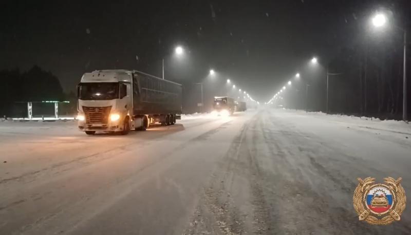 Ограничение движения действует с 45-го по 100-й километр. Причиной стали неблагоприятные погодные условия: сильный снегопад и ветер.