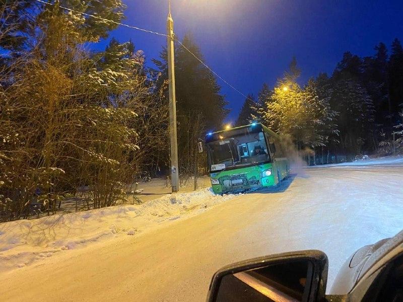 В Иркутске из-за плохо убранной дороги в кювет слетел муниципальный автобус