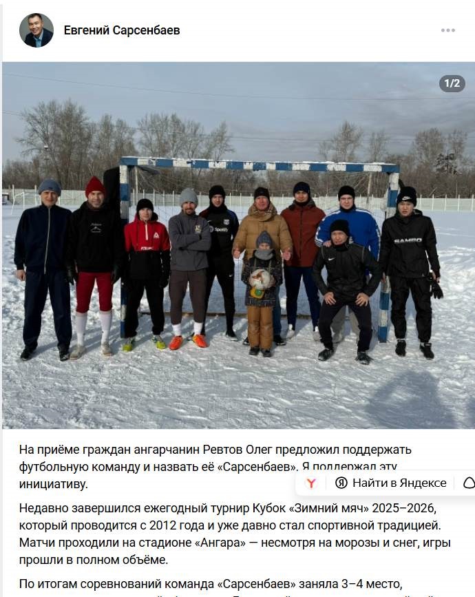 Тут вот участвует в чиновничье-депутатском турнире на валенках в Зиминском районе.