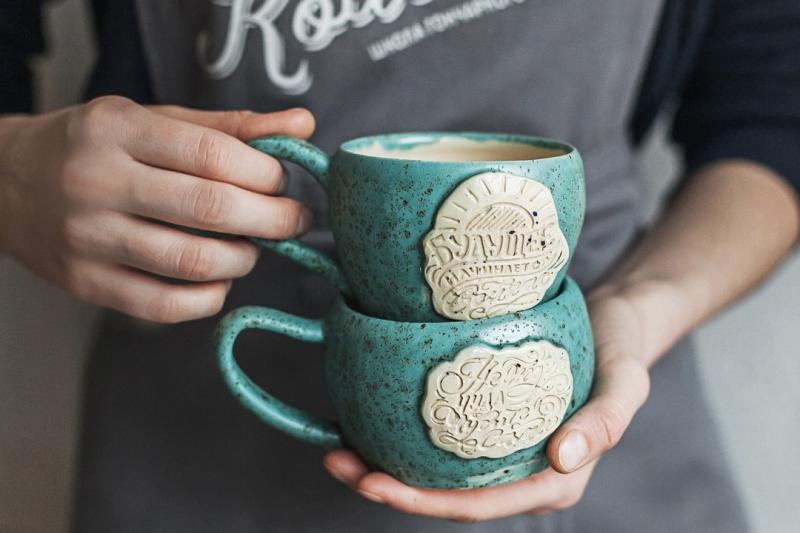 Посетители, работая за гончарным кругом сделают кружку желаемой формы: прямую, округлую, с раскрытым верхом или любую другую. Далее участники смастерят ручку и сделают надпись, а затем соединят всё воедино и смогут приступить к декору.