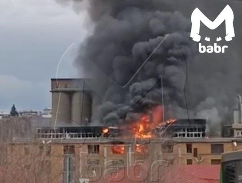 Работы по тушению огня продолжаются. Информации о пострадавших и погибших нет.