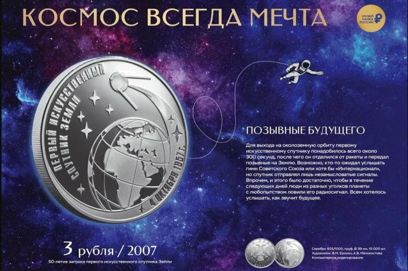 Выставка знакомит, как история освоения космоса отражена в памятных монетах. Посетители увидят, как в металле запечатлены знаковые моменты отечественной космонавтики: полёт Юрия Гагарина, работа космодрома Байконур, история смелых космических проектов и многое другое. Рядом с изображениями монет приведены их характеристики и краткая справка о событиях, связанных с покорением Вселенной. Часть монет была выпущена большими тиражами, однако есть и редкие экземпляры.