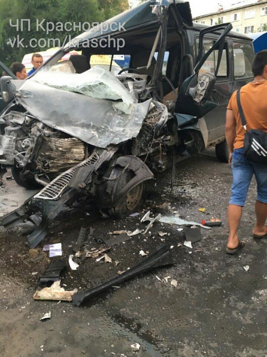 ДТП произошло на улице Тельмана в Красноярске вечером 30 июля. «Газель», водитель которой был пьян, въехал в маршрутный автобус.