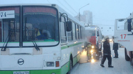 Автобус с пассажирами вспыхнул на остановке в Красноярске