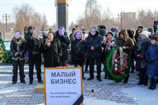 «Похороны малого бизнеса» состоялись 28 февраля в Красноярске в сквере Космонавтов. Несколько сотен человек собрались на необычный митинг, чтобы выразить свое недовольство местным властям.