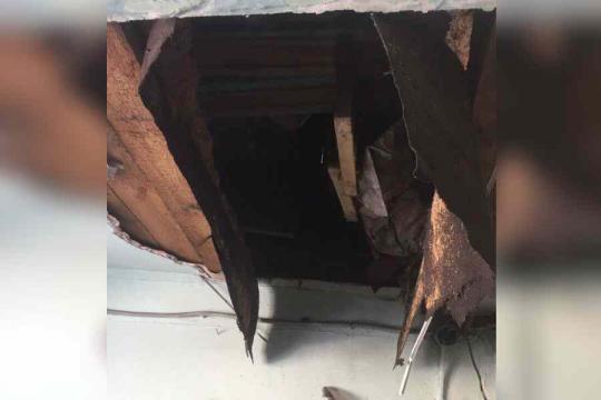 9 марта коммунальщики закрыли дыру в потолке, установив подпорки. 12 марта в дом приедет комиссия, которая должна принять решение либо о немедленном ремонте, либо о выделении жильцам дома новой жилплощади.