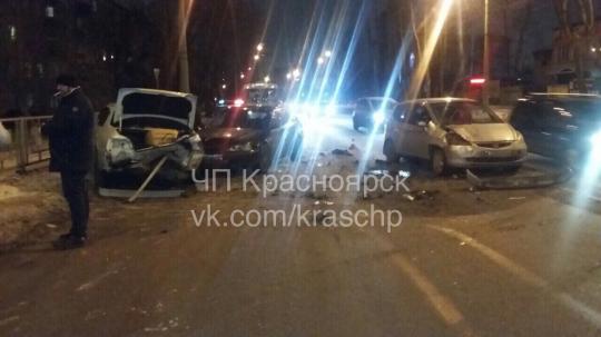 В Красноярске на улице Калинина ночью 15 декабря произошло ДТП.