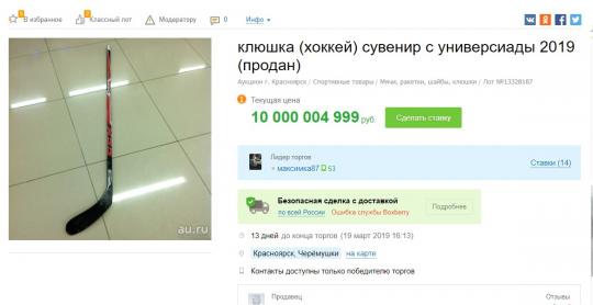 «Клюшку мне подарил канадский хоккеист после игры. Продаю за ненадобностью. Цена символическая. Это не только сувенир с студенческих игр, но и хороший спортивный инвентарь. В отличном состоянии», - написал автор объявления.