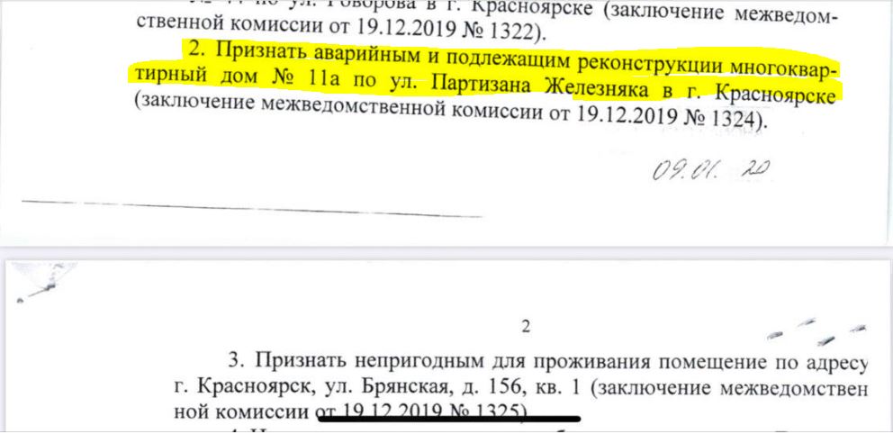 То есть мэрские подчинённые отменили решение комиссии за неделю до нового года и постановили, что дом нужно отремонтировать. Отличное решение, с одной стороны. По результатам 2019 года Красноярск вошел в лидеры по освоению средств фонда капремонта. То, как они осваиваются — совсем другая история. Показатели по капремонту, конечно, нужно поднимать, но ремонтировать здание с фактически установленным износом 62% — это уже маразм. Что там, простите, ремонтировать? Права была Елена Евгеньевна, когда писала, что пора обращаться в прокуратуру…