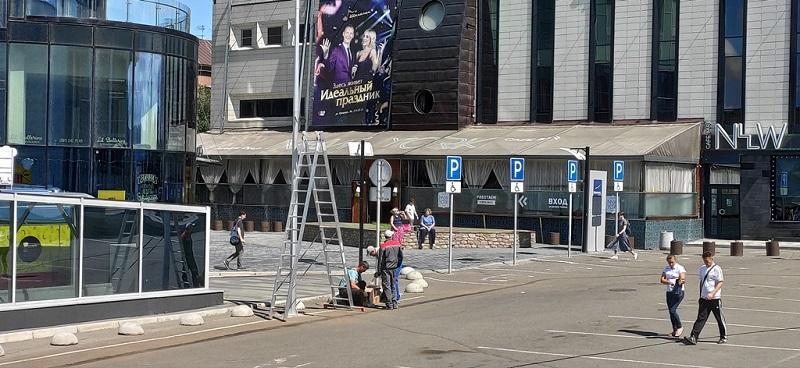 28 июля. Рабочие подготавливают площадку для платного размещения машин