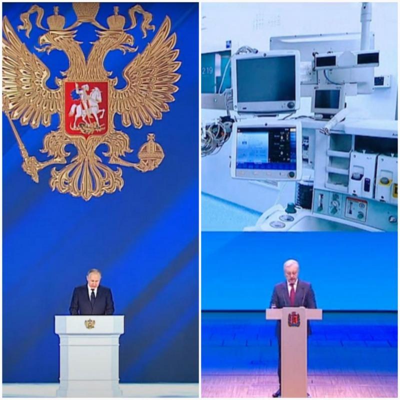 Вероятно, новой команде пиарщиков принадлежит идея переформатировать ежегодный отчёт губернатора перед краевым Законодательным собранием, сделав его несколько более многозначительным. Усс нынче выступал не в здании Заксобрания, а со сцены Большого концертного зала. Монументальность, большой экран с красивыми картинками — всё, как положено. Судя по всему, равнялись прямиком на главу государства, чтобы наверняка:
