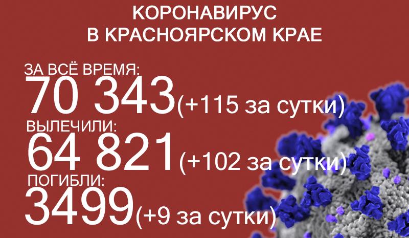 Коронавирус в Красноярском крае: ещё 115 заражений и 9 летальных случаев