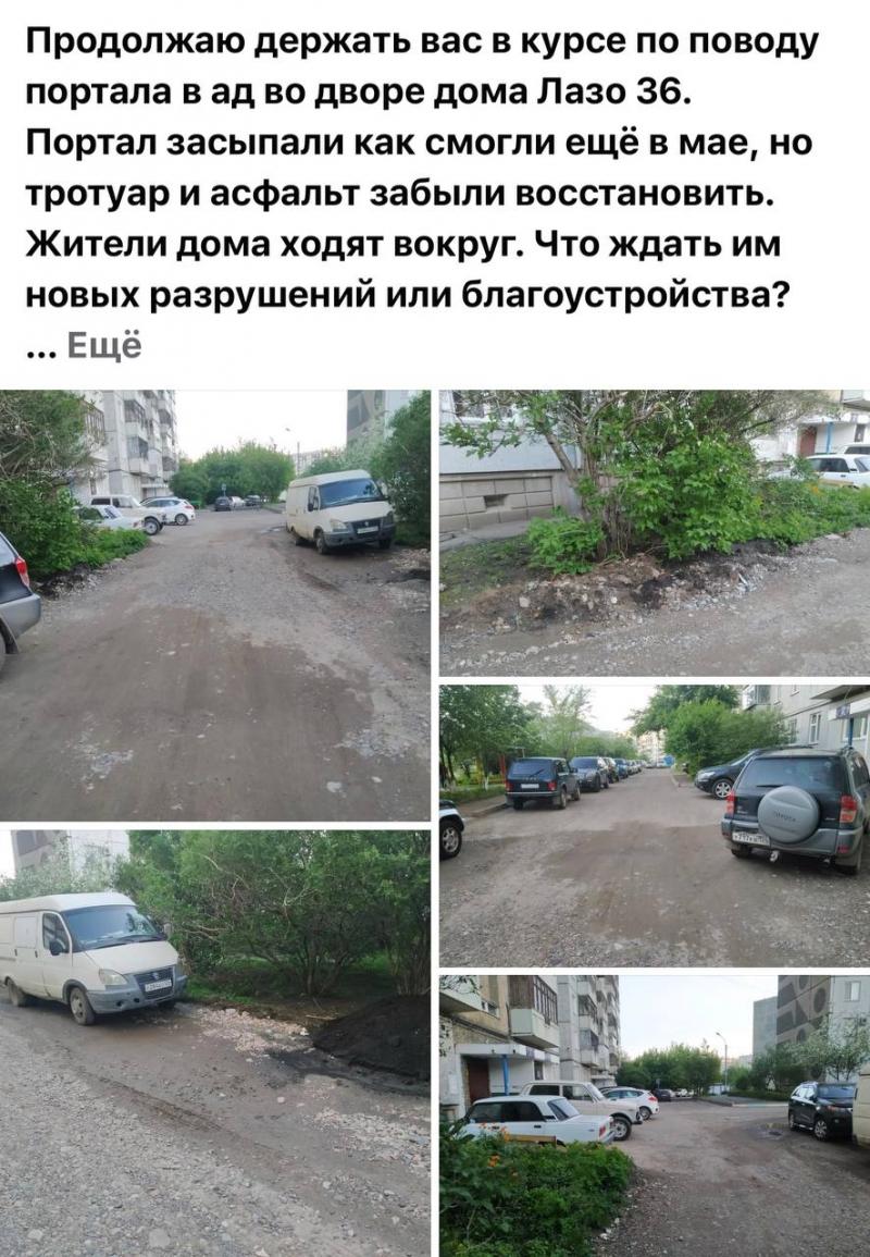С Лазо, 36 продолжают поступать сигналы на некачественную дорогу. В мае просила ДГХ решить вопрос и они засыпали ямы щебнем. Теперь в квартирах пыль, от проезжающих по дороге машин. Буду добиваться, чтобы заасфальтировали.