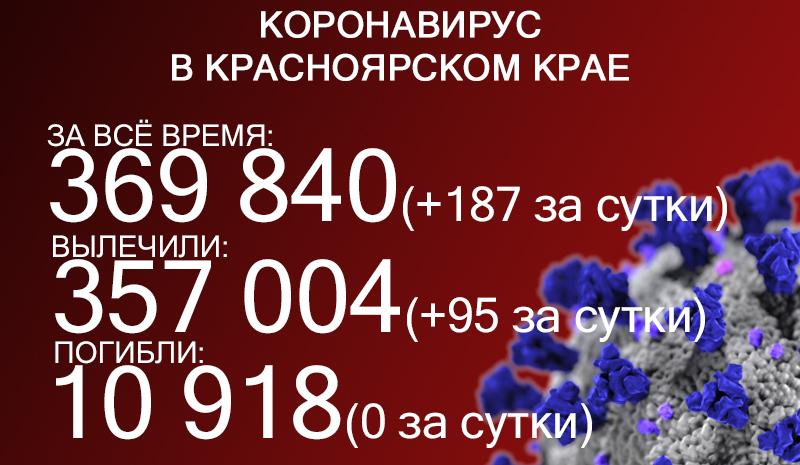 8 августа в Красноярском крае выявили 187 заболевших коронавирусом.