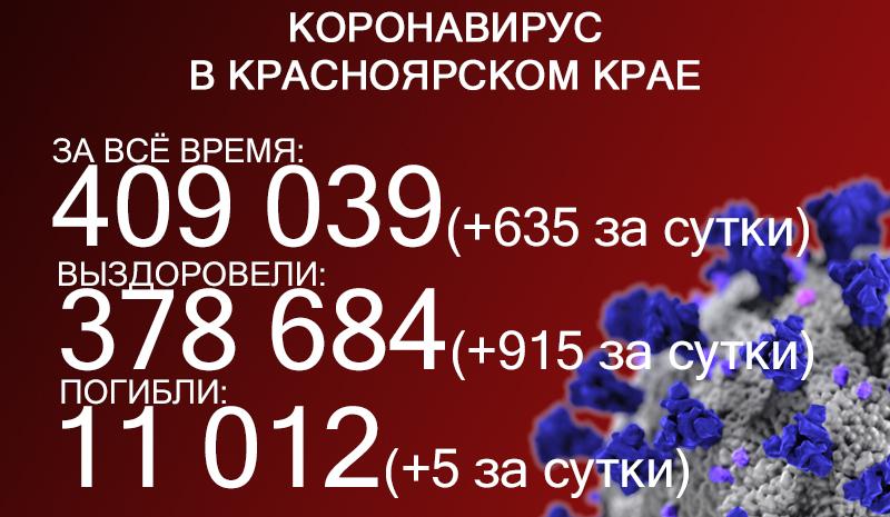 20 сентября в Красноярском крае выявили 635 заболевших коронавирусом, 119 человек госпитализировали.