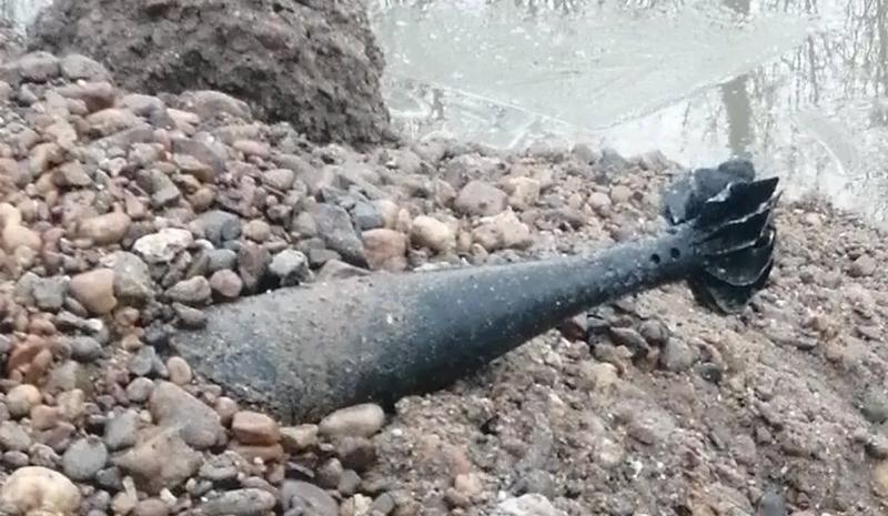 На этом месте проводили работы по углублению русла реки. В какой-то момент рабочие наткнулись на снаряд в земле.