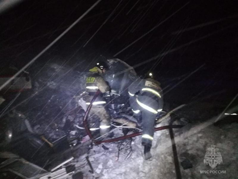 Пожар потушили шестеро сотрудников МЧС. Они вытащили из искорёженных машин тела двух погибших, а также одного выжившего, его передали медикам.
