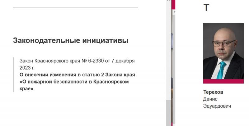 На депутатство в Заксобрании Денис Эдуардович обрёк себя в сентябре 2021 года. А судя по информации с официального сайта законотворцев, за Тереховым числится одна инициатива. И та совместная. Негусто.